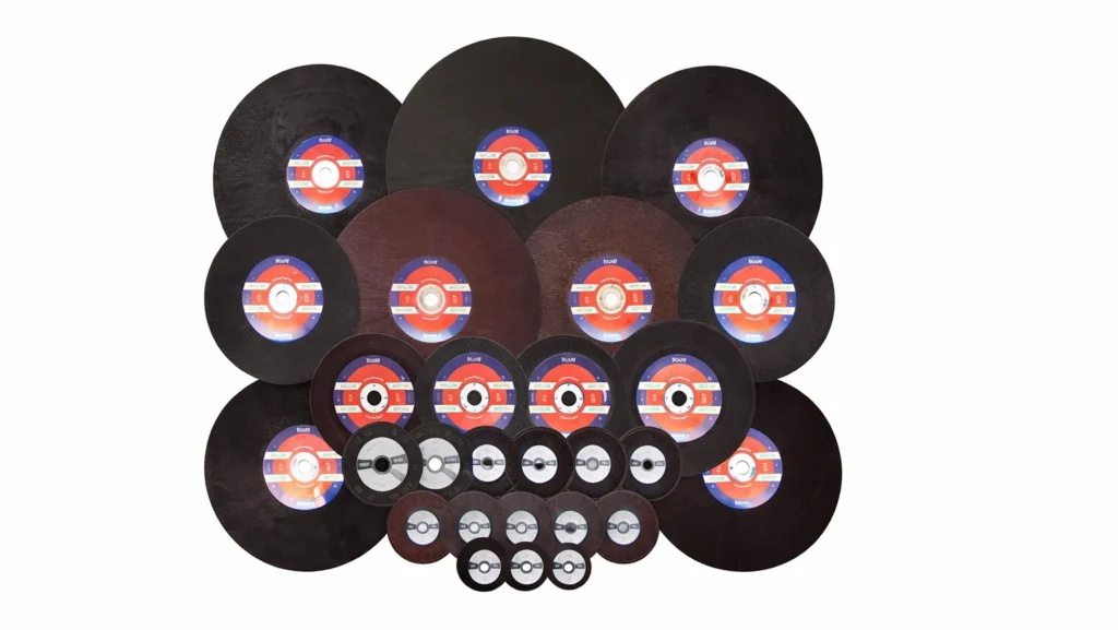 Professional-grade cutting wheels in various sizes for precision metal work.