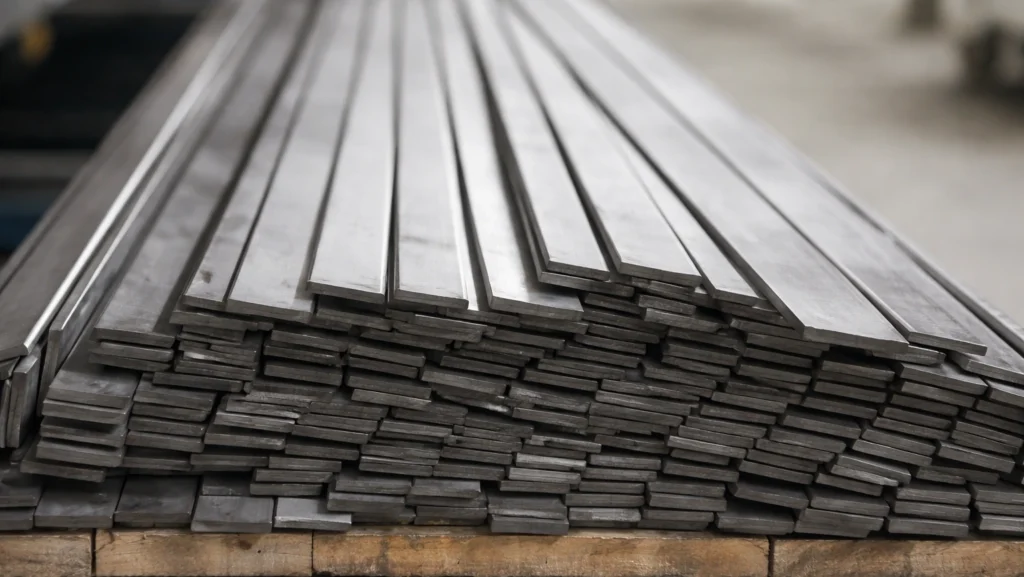 Precision-cut flat bars in various widths and thicknesses for fabrication needs.